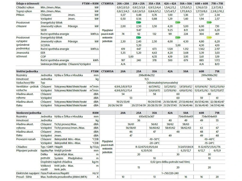 - Energetická třída chlazení A+++/ topení A+++