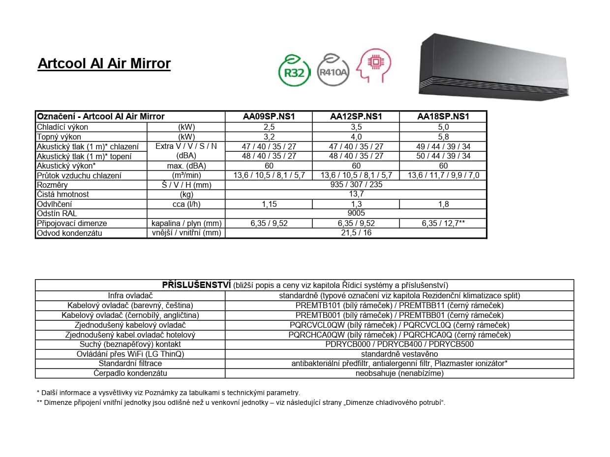 Klimatizace LG Artcool AI AIR Mirror 2,5 kW AA09SP NS1 - vnitřní jednotka