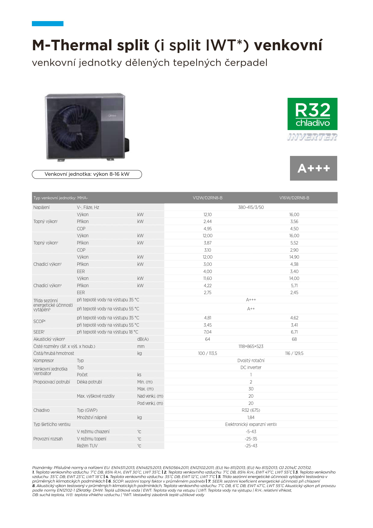 (Údaje o výkonu vytápění jsou uvedeny při teplotě venkovního vzduchu 7°C DB a výstupní teplotě vody 35°C. Úplné specifikace naleznete v tabulce výše.)