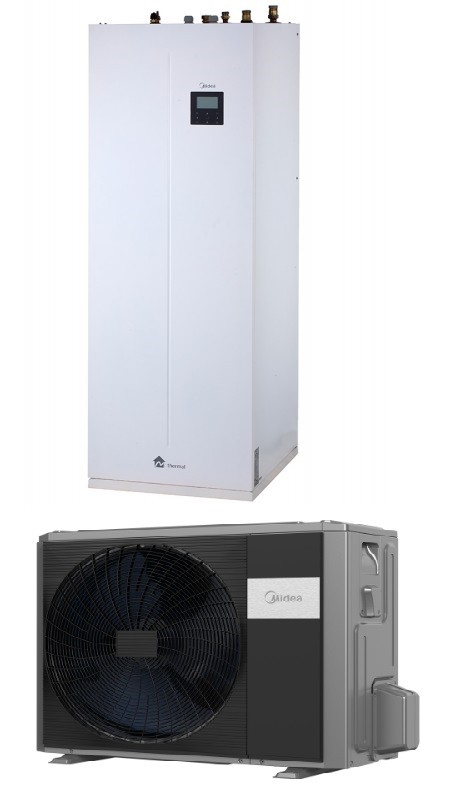 Midea M-Thermal Split, venkovní jednotka tepelného čerpadla s IWT vnitřní jednotkou a integrovanou nádrží TUV 190 litrů
