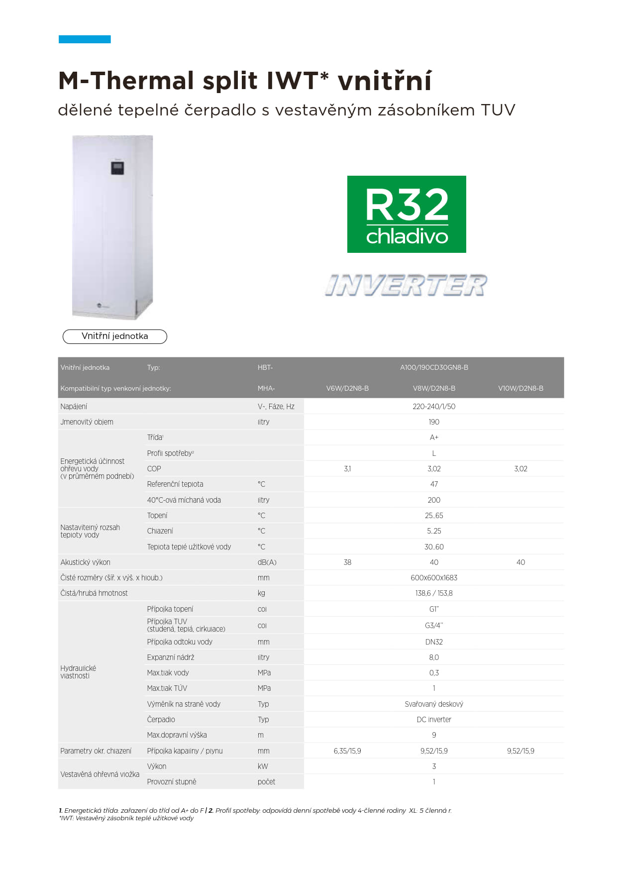 - Tyto jednotky o objemu 190L dodáváme pouze s venkovní jednotkou o výkonu 6, 8 a 10kW